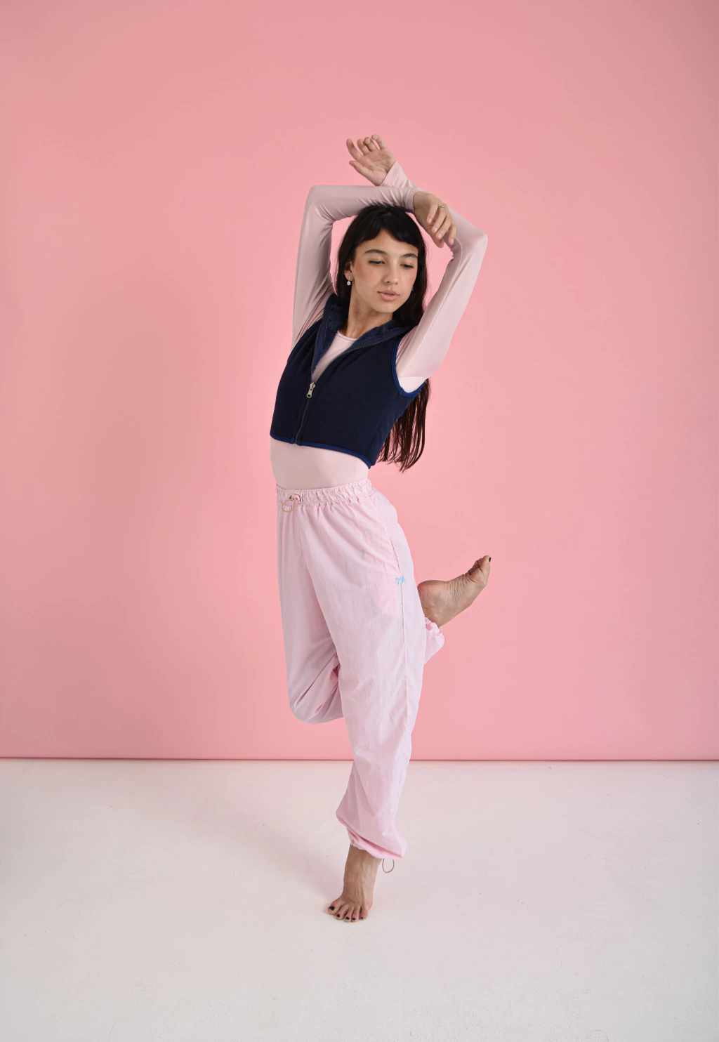 ES REVERSIBLE 😱 Azul de un lado liso de algodón y del otro peludito. Calza a la cintura, tiene cierre y lo más importante es que es al cuerpo, la idea es que te quede apretadito para que te caliente mejor y puedas lucir tus lineas en clase!!