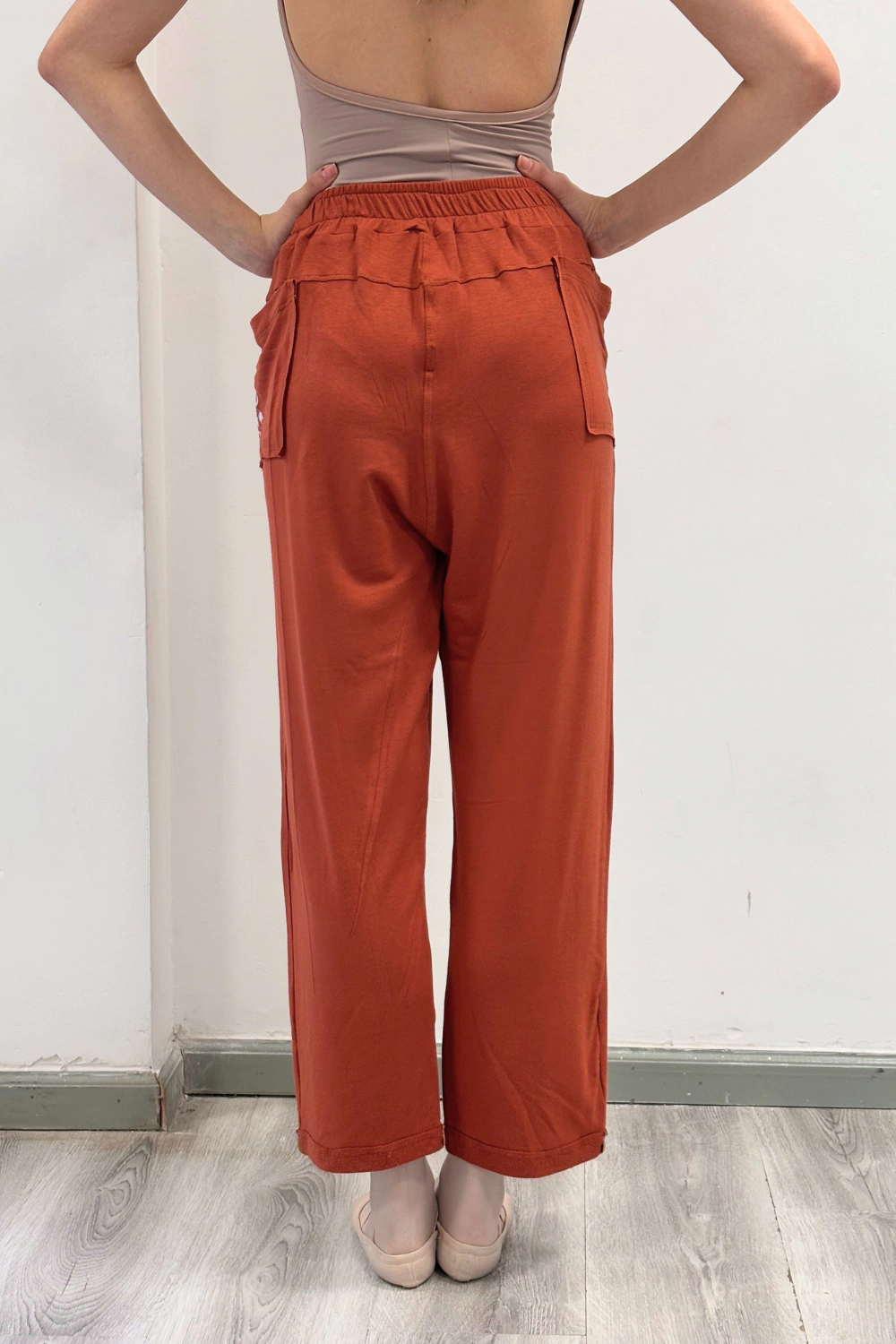Pantalón ancho, largo a los tobillos, es de rústico con lycra, tiene bolsillos a los laterales. El pantalón ideal para deslizar en tus clases de contempo.